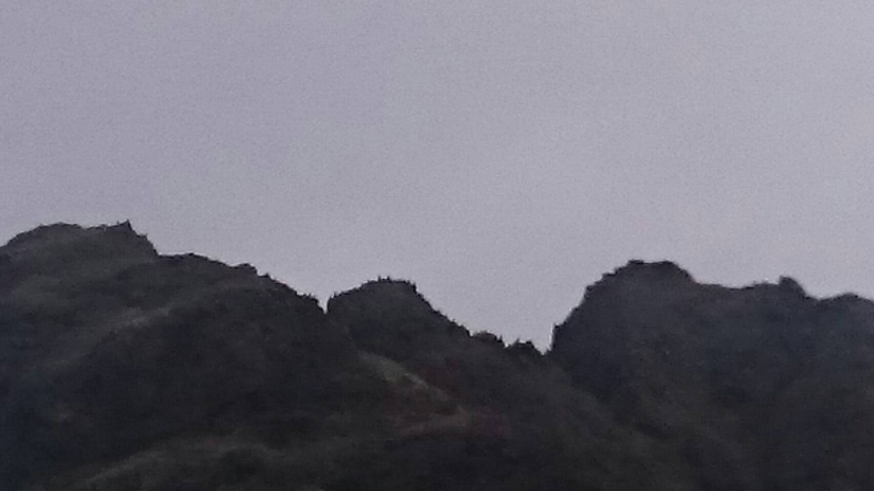 今日は階段国道を降りて海の方に行ってみました。岩場にヒヨドリ?の大群がとまっています↓