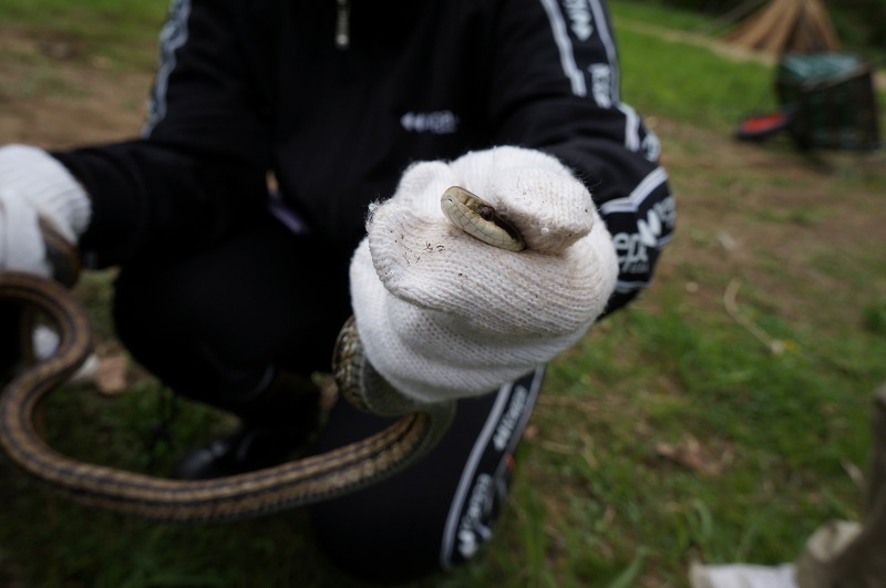 バッタリー村には北里自然界部だけでなく岩手大学の学生や社会人の方々も多く訪れており、交流することができます。 夜は囲炉裏を囲んで宴会!みんな友達ふえたかな? 朝は魚を炭火焼でいただきます。 朝食後はバッタリー村整備のお手伝い! 様々な生き物と触れ合うこともできます。 子ウサギに出会うこともできました! ”バッタリー”とは水の力を利用して雑穀をつく道具のこと。実際につくところを見られる場所はそうそうないですよ! 今回は少しトラブルもありましたが、みんな楽しんでもらえたでしょうか?まだ行ったことのない人は次回、ぜひ参加してみてください!写真、文:わたわた