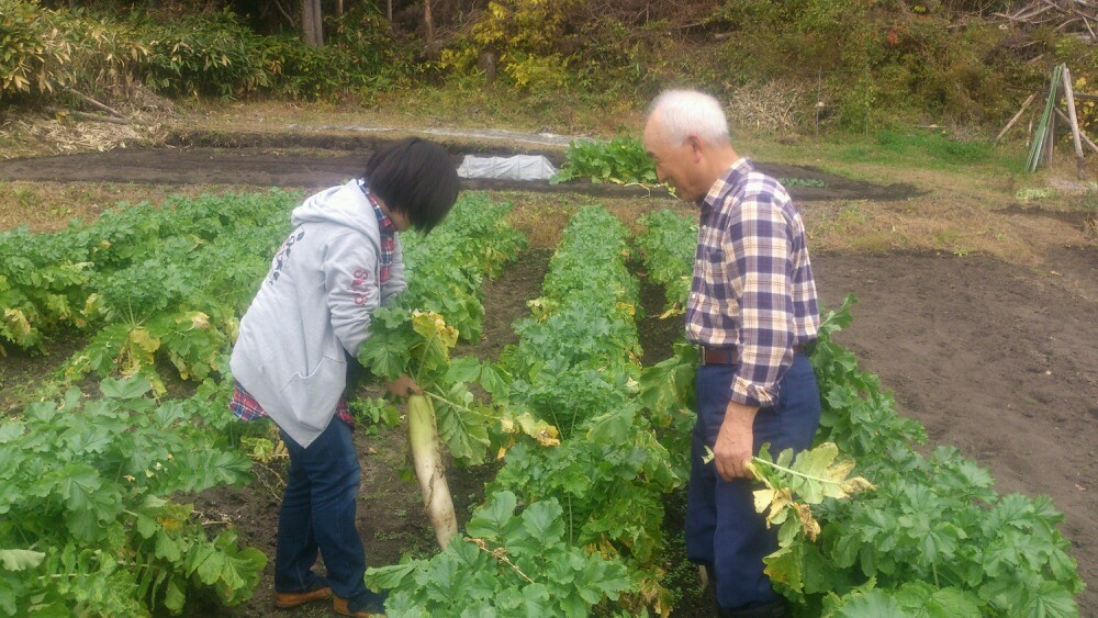 山下さんたちのお手伝いし大根をおろしたり、食用菊をちぎったり、魚を焼いたり、魚を切ったり、皆で手伝いながら料理を作りました。