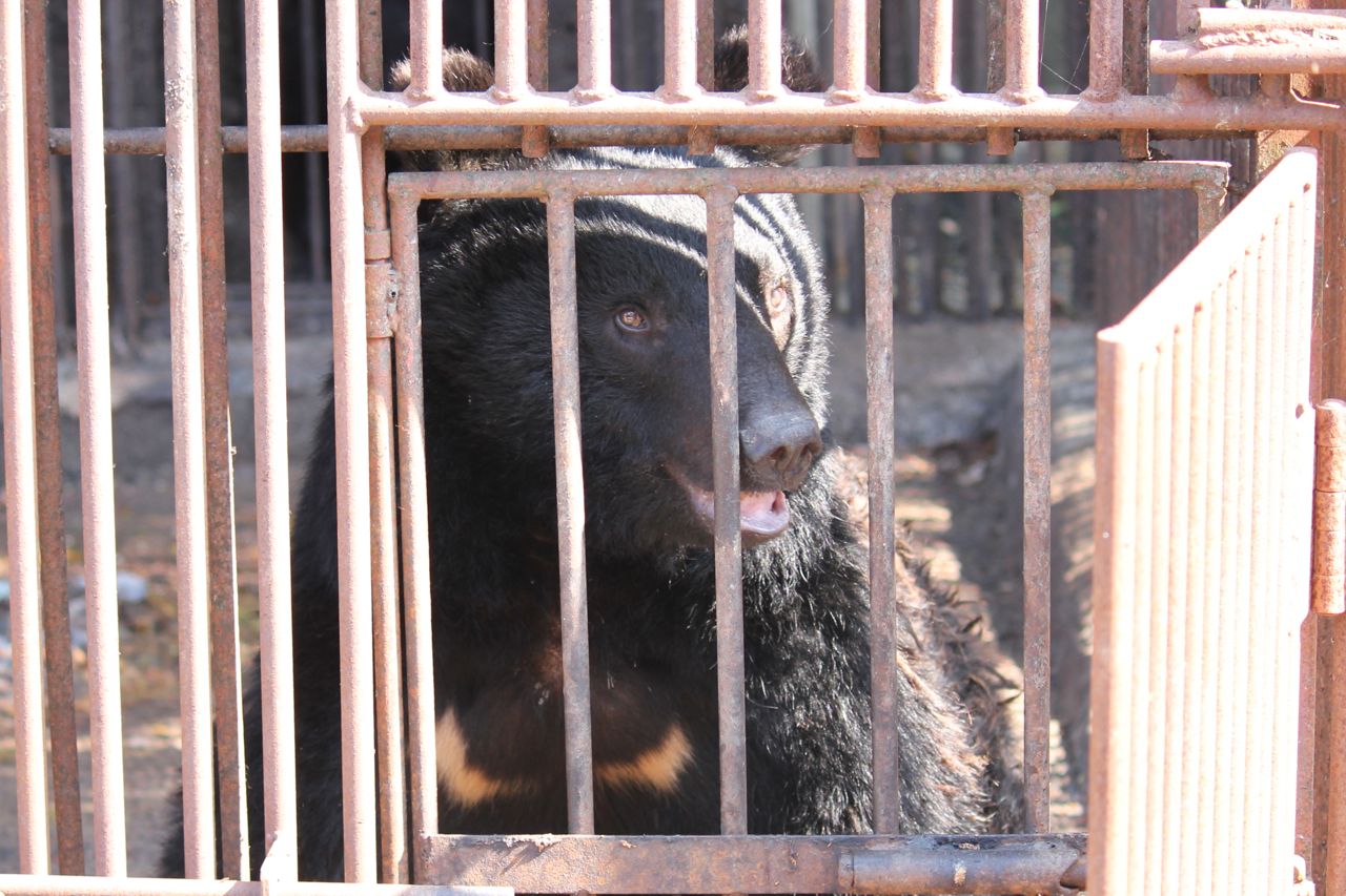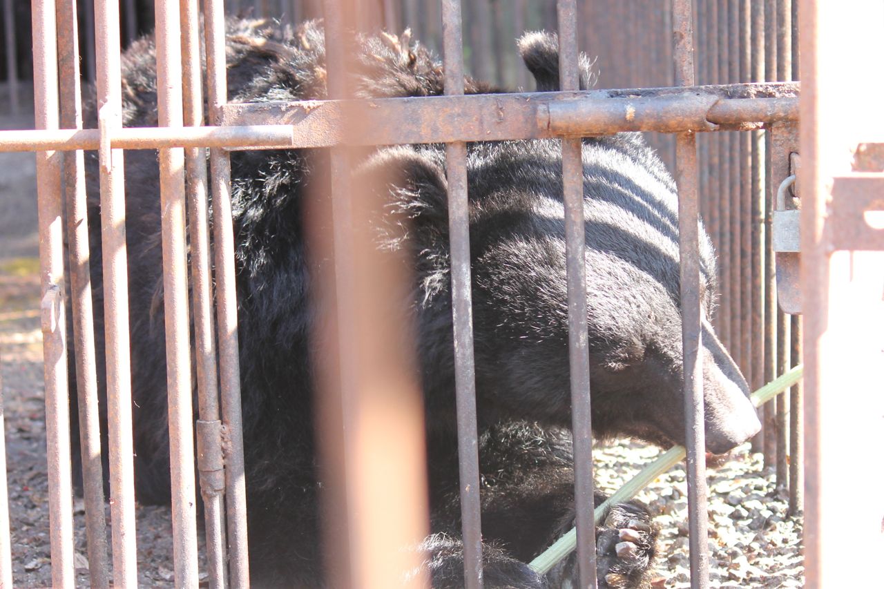 文「そして、そのクマみたいな犬…じゃなくて犬みたいなツキノワグマ。大好物はフキの茎。」