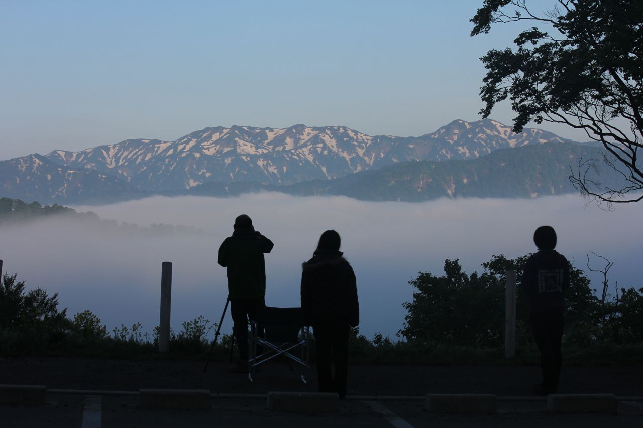 文「白神山地の暮れと明け。そびえる山々の大迫力!!」