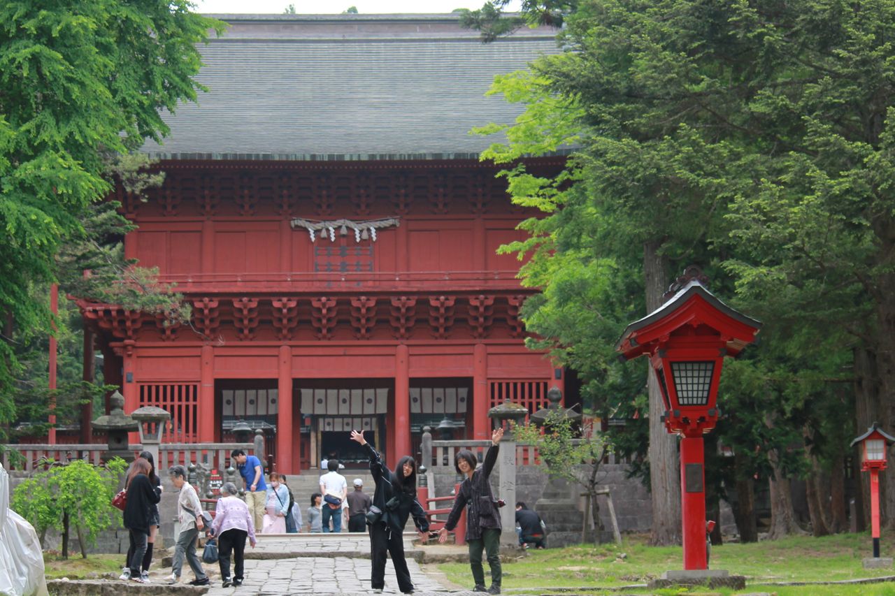 なかじ「岩木山神社!!晴れていれば参道から岩木山が臨めるのだけど…残念(._.)」
