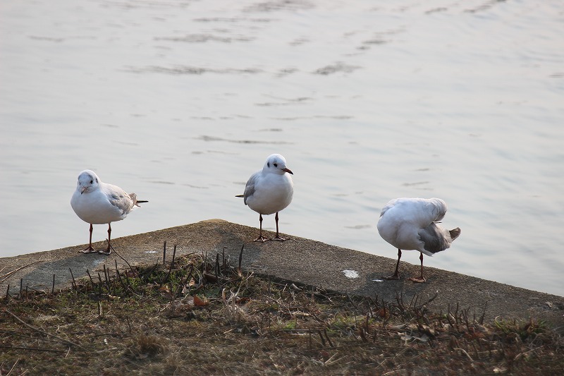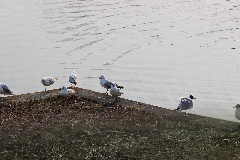 ユリカモメ団参上!頭が黒いのは夏羽です。