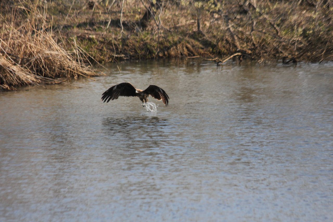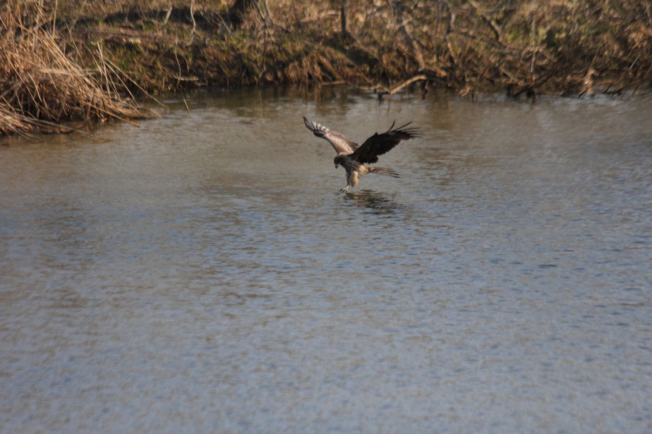 何十羽ものトビ達が次々と水面をバシャァ!してゆく。