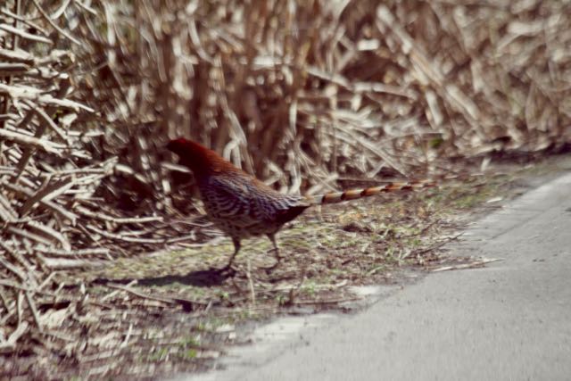 帰りのあじさいロードで飛び出してきたヤマドリさん。