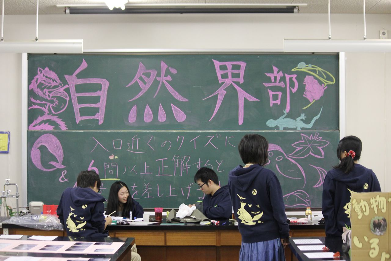 自然界部はブースを設けて日頃の活動や生き物の展示、発表をしました。