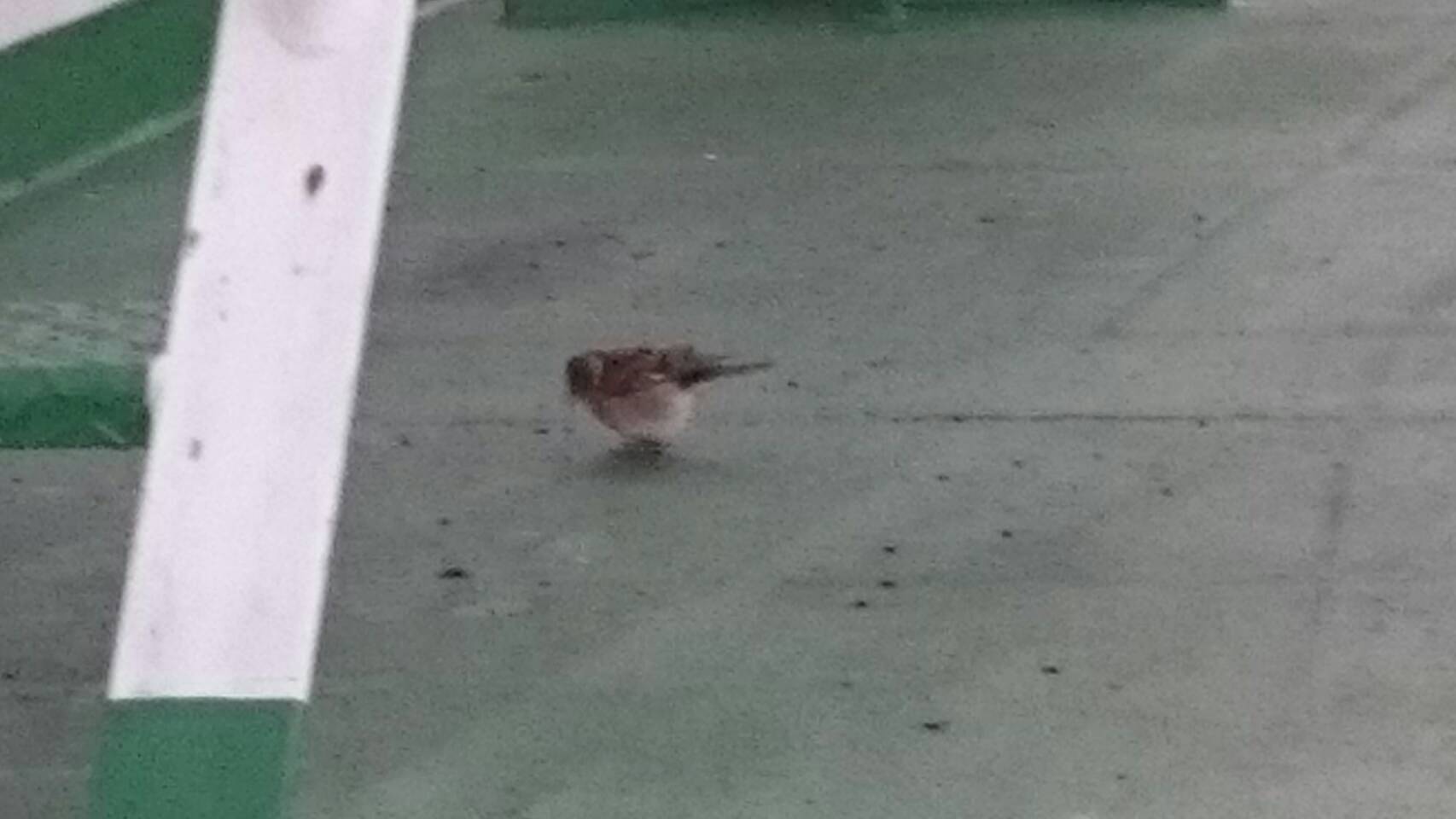 日の入りを撮っていたら さっきのアトリ?が甲板に 近くにいても逃げません